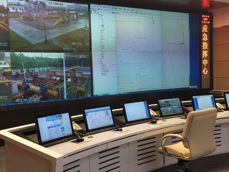 集團應急指揮中心是杭州市燃氣應急領導小組指揮部,體現著集團綜合實力和“兩保一優(yōu)”重要性,實行24小時專人監(jiān)控,主要承擔集團內重點要害部位的安防監(jiān)控、生產信息管控、突發(fā)事件應急指揮、外部對接協調、運行數據分析等職能,應急指揮中心與市公安局“110”聯動指揮中心和市城管委“數字城管”連接,可實現與市應急指揮中心遠程視頻連接。