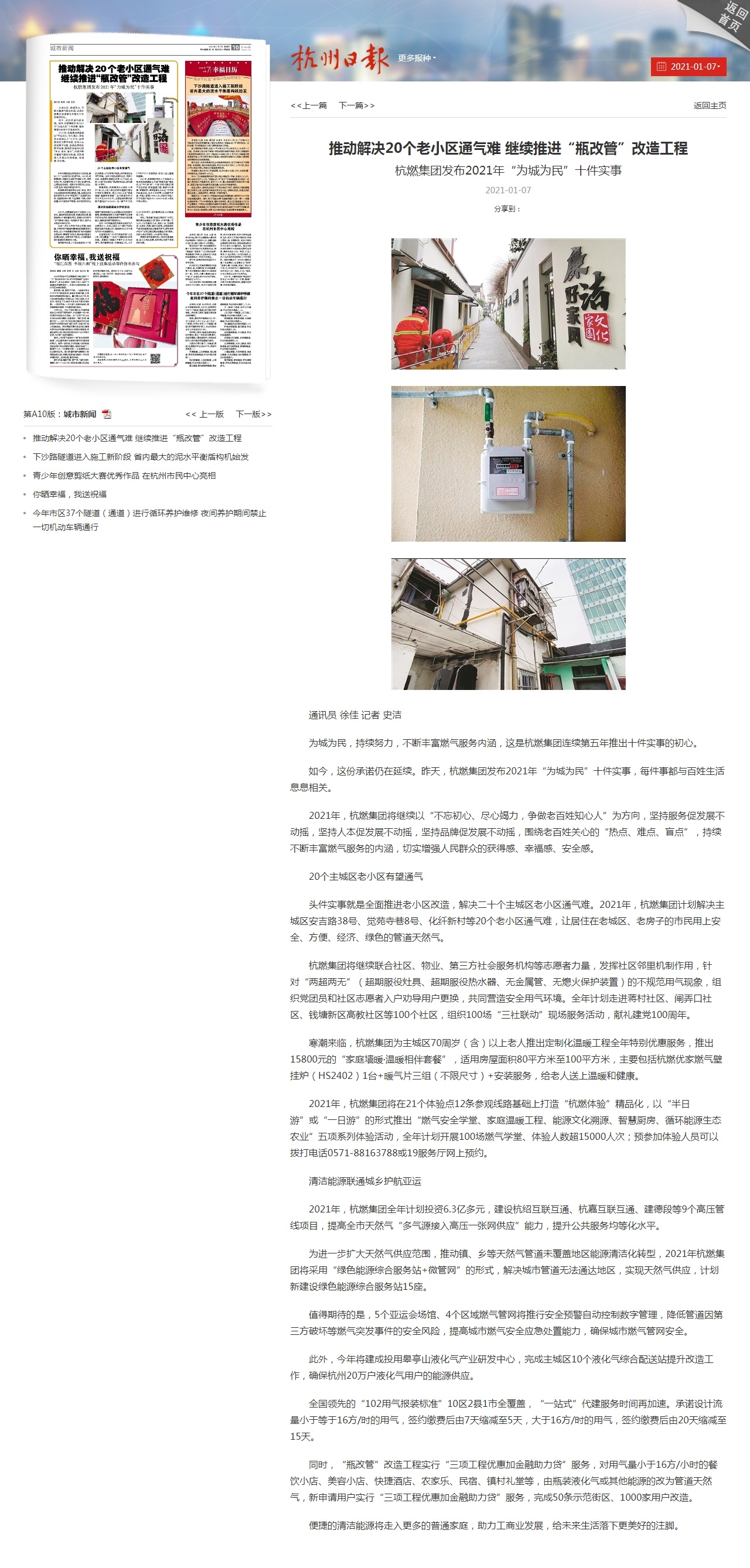 如今,這份承諾仍在延續(xù)。昨天,杭燃集團(tuán)發(fā)布2021年“為城為民”十件實(shí)事,每件事都與百姓生活息息相關(guān)。
